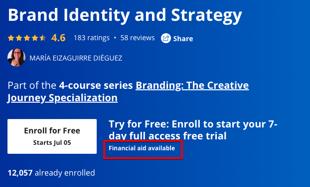 Open the course you wish to enroll in and click on “Financial aid available.”